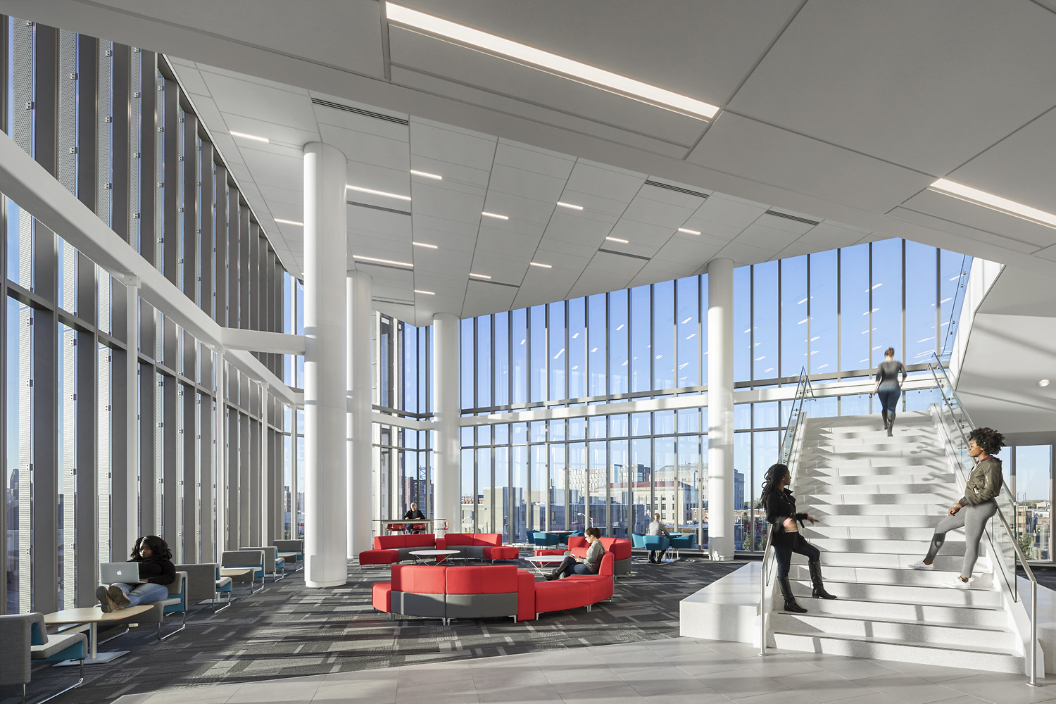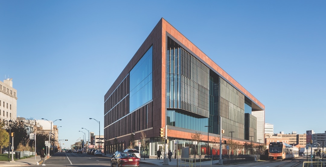 Supported by the citizens of New Jersey who approved the 2012 Building the Future Bond Act in support of strengthening New Jersey’s higher education system, the Nursing and Science Building at Rutgers University–Camden includes an immersive learning classroom; patient simulation labs; physics laser research labs; and a two-story atrium with commanding views of Camden and Philadelphia. Retail tenants will be located on the main level.