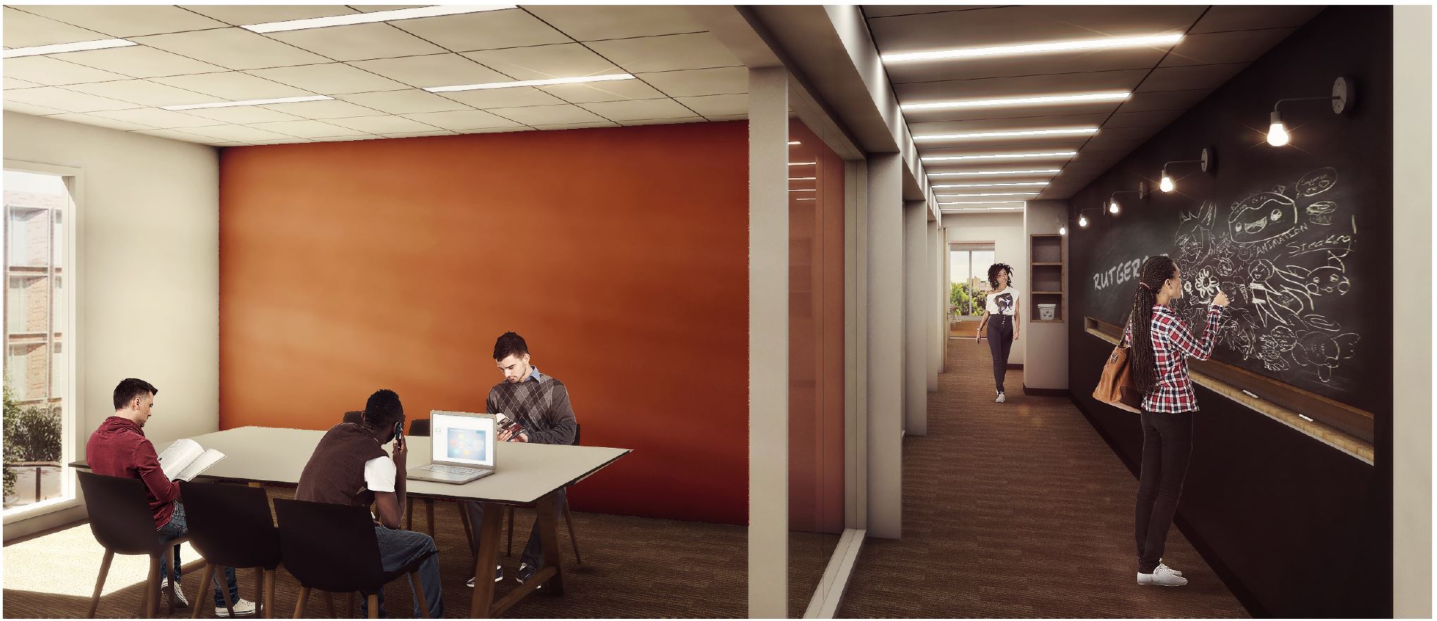 Rutgers Honors Living-Learning Community, Newark NJ, is a state-of-the-art learning and residence facility with dining, recreational, and academic spaces that will host upwards of 400 talented undergraduate students.